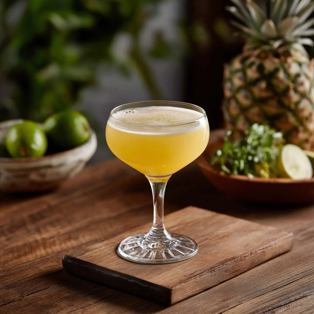 Denna smakrika twist skapades av Sean Hoard vid Teardrop Lounge i Portland & publicerades runt 2016 i Food & Wine som en variant av Daiquiri, kallad “Wray’s Nephew”. Tillsatsen av Fernet Branca ger en komplex, örtig kant till ananas- & rumkompositionen, vilket höjer cocktailen från en enkel tropisk drink till något mer intellektuellt & distinkt.